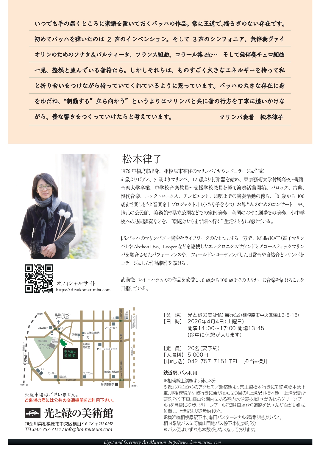 【マリンバソロによる バッハ無伴奏チェロ組曲 全曲演奏会】